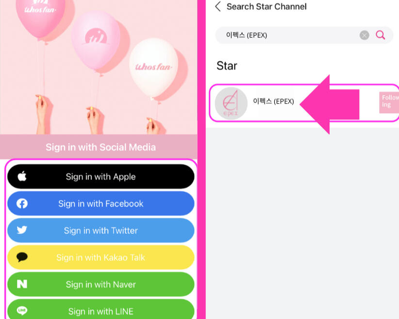 - Search for "EPEX" or "이펙스" and choose the EPEX logo and click “Follow”.5. Add your reference code