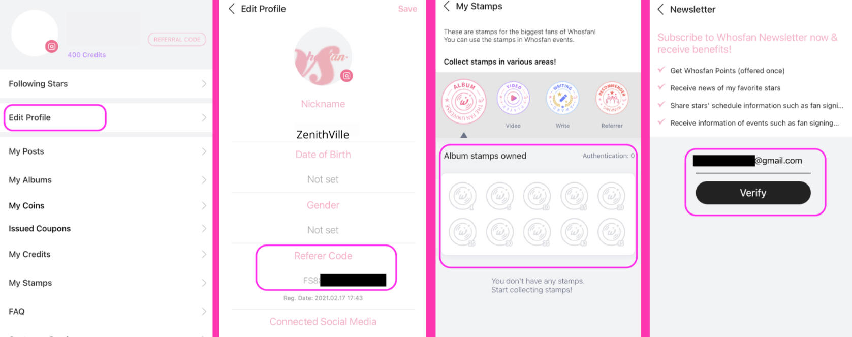 2) Share referral code with ZENITHs and if they redeem your code, you will receive 1 stamp & 200 credits.