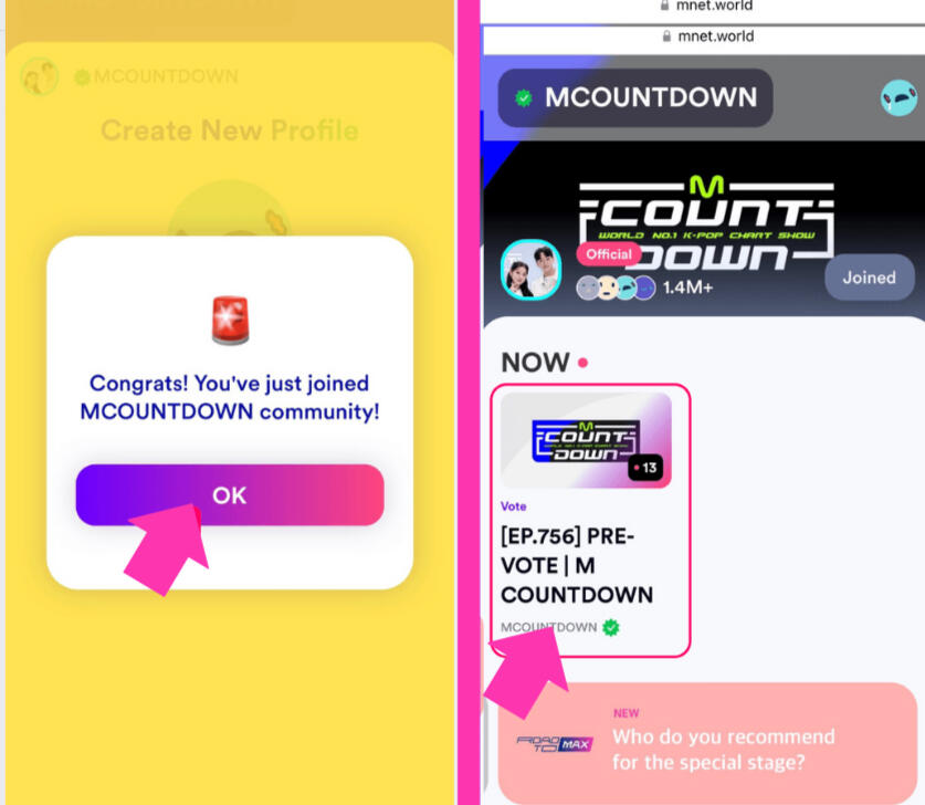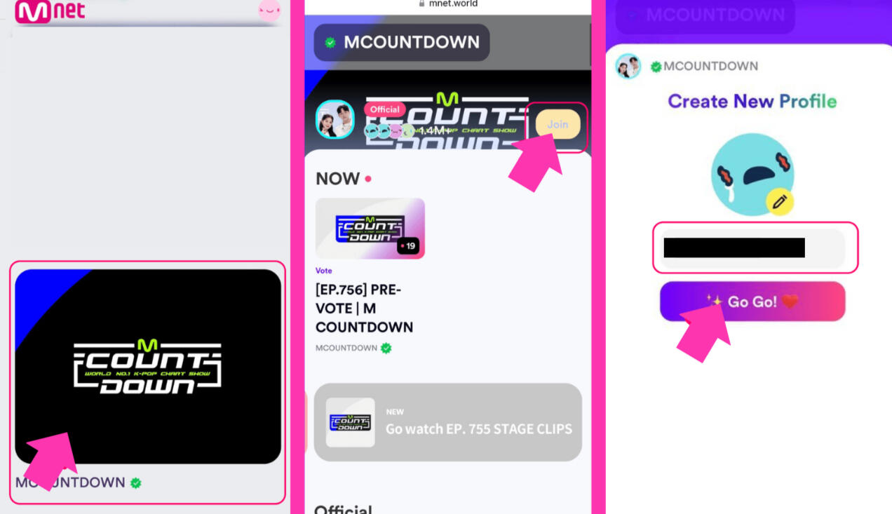 Join Community and Voting1. Scroll down until you find the Mcountdown section and click on it.2. Click the yellow ‘join’ button in the top right.3. Create an Mcountdown profile.4. Once your profile has been set up you will get a message that you have joined the Mcountdown community.5. To vote
