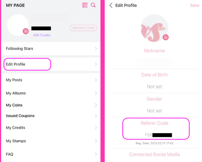 - You can earn +200 credits when you enter a referral code.1) Click "Edit Profile".